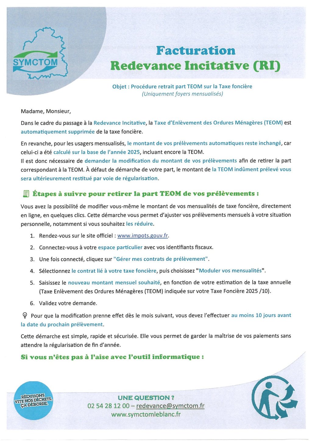 La mise en place de la redevance incitative entraîne 𝐥𝐚 𝐬𝐮𝐩𝐩𝐫𝐞𝐬𝐬𝐢𝐨𝐧 de la TEOM 𝐬𝐮𝐫 𝐥𝐚 𝐭𝐚𝐱𝐞 𝐟𝐨𝐧𝐜𝐢𝐞̀𝐫𝐞.